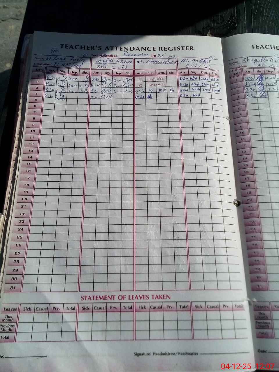 | Name: MSa**** Ta**** Designation: (School Headmaster's/Headmistress's) Ic Hm S.S.T. (G) Phone/Cell Number: 03**** |