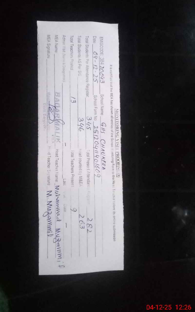| EMIS Code: 38420043 | Name of School: GHS CHAUKERA | |||