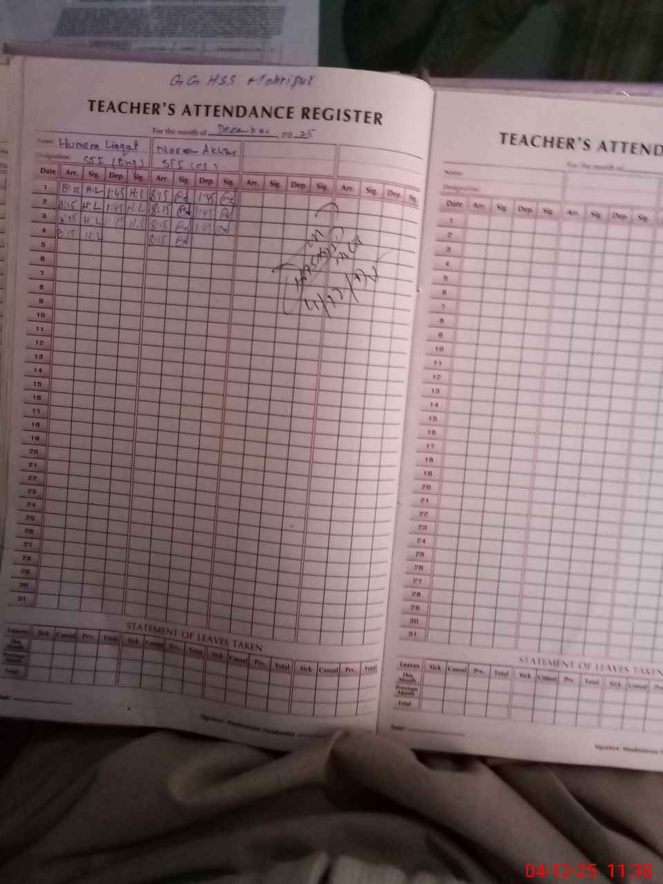 | 36**** | Na**** Ya**** | PST Science/Maths | Regular | 0 | 0 | 0 | 0 | 0 | 0 | 0 | 0 | 0 | Maternity |