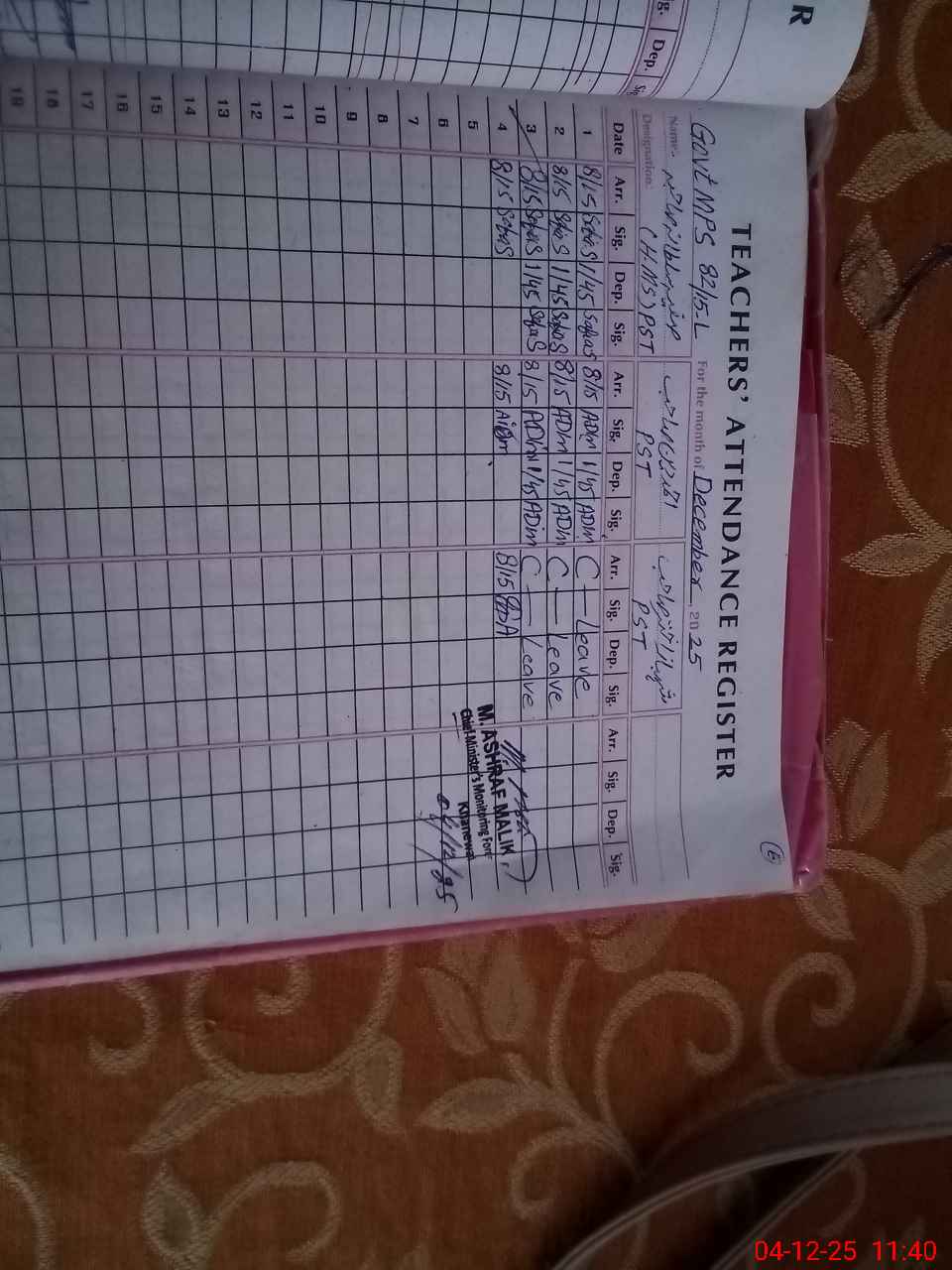 | EMIS Code: 36420681 | Name of School: GMPS CHAK NO. 82/15-L KACHA KHUH | |||