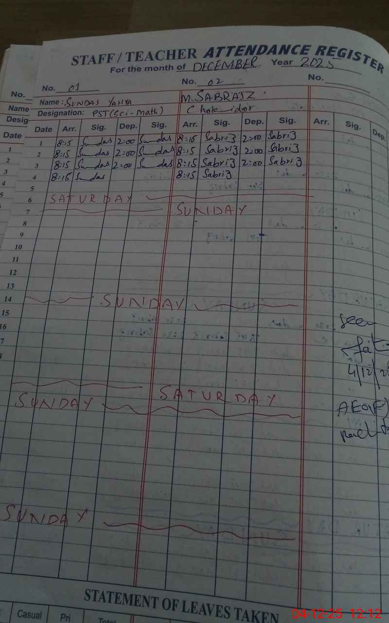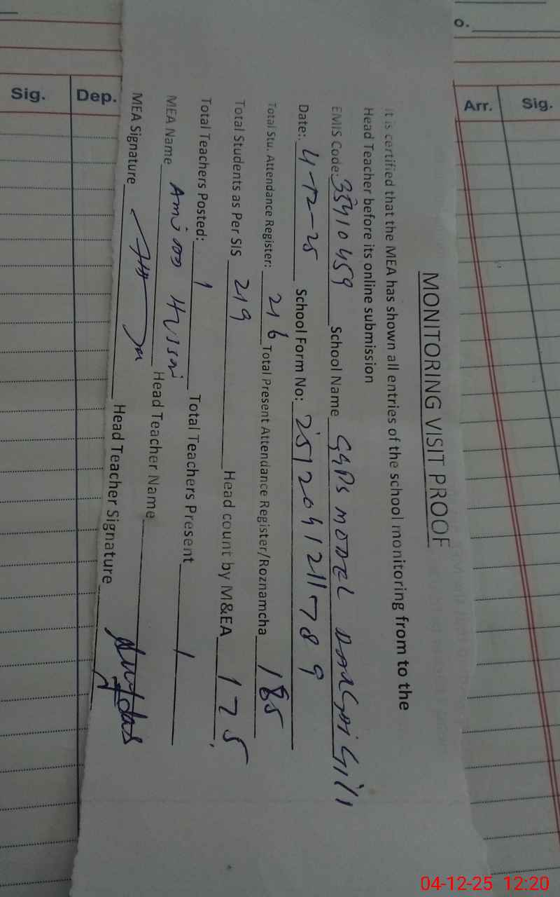 | Attendance Register | Head Teacher | MEA with School | Visit Proof |