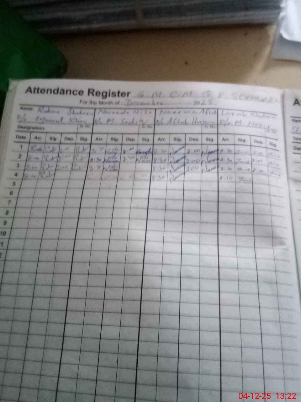 | CNIC | Full Name | Designation | R/C | Absence During Last Calender Month |