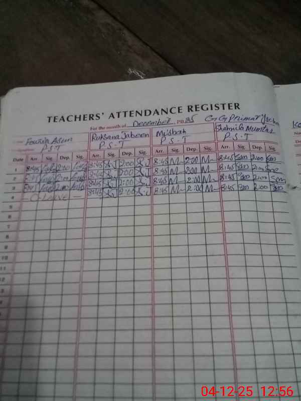 | Attendance Register | Head Teacher | MEA with School | Visit Proof |