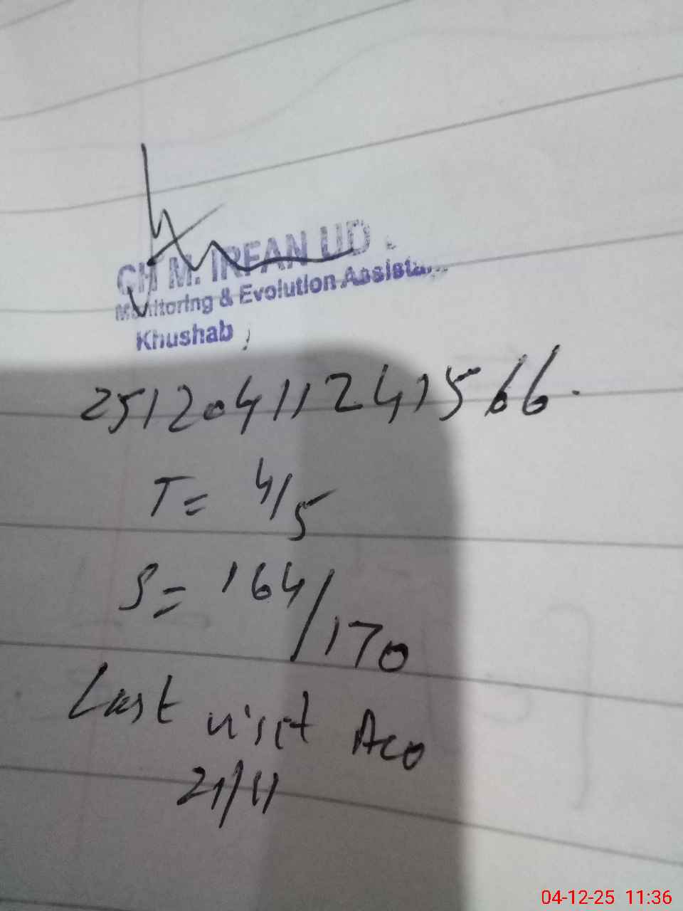 | PP No.: 82 | NA No.: 93 | Mauza: UCHHALI | UC Name: UCHHALI | UC No.: 1 |