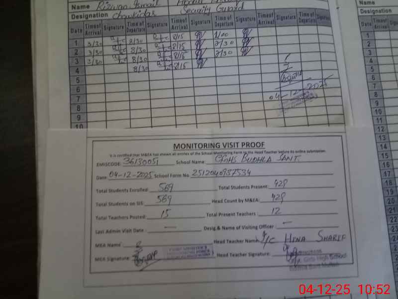 | EMIS Code: 36130051 | Name of School: GGHS BUDHLA SANT MULTAN | |||