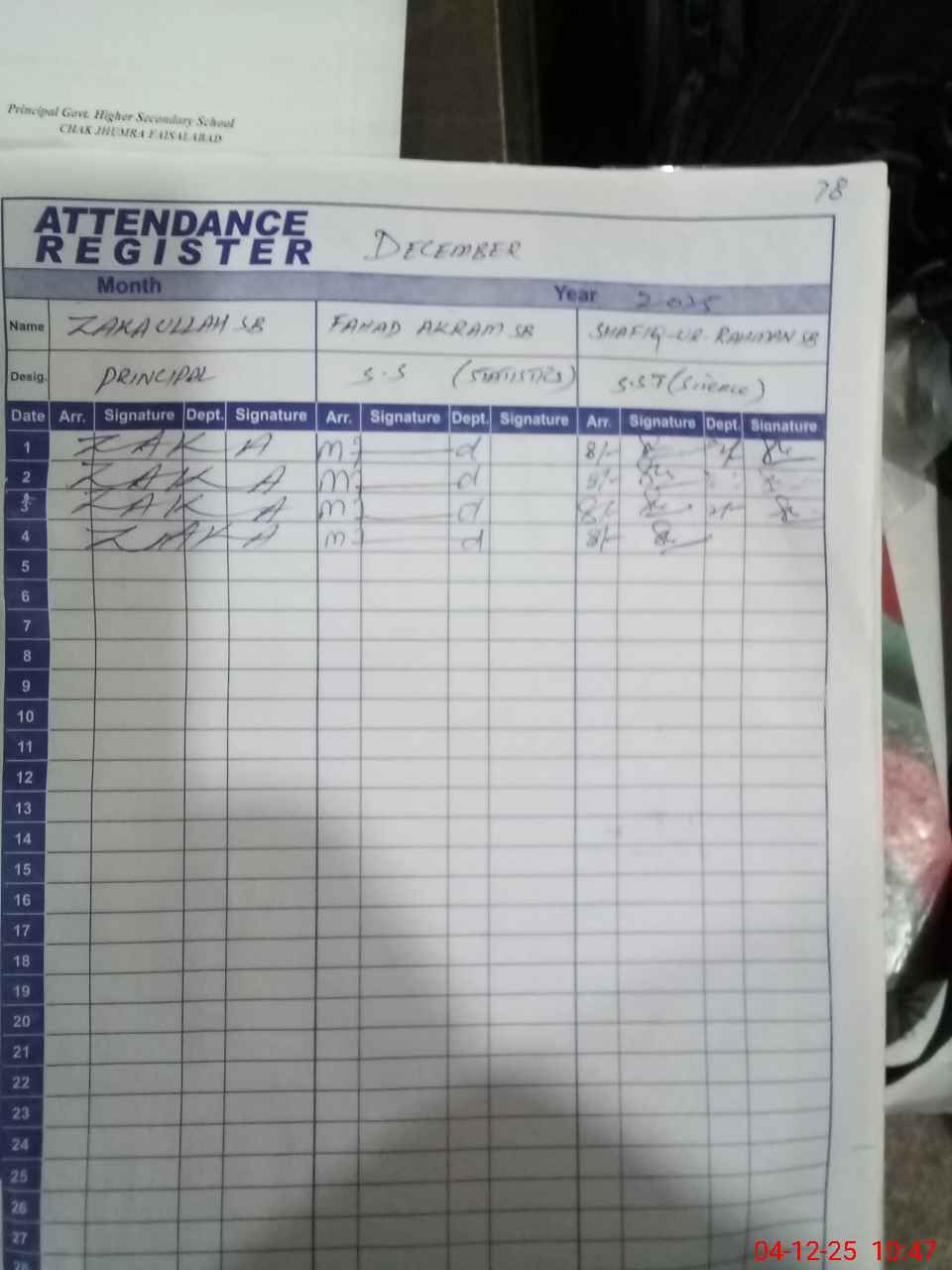 | Name: Za**** Designation: (School Headmaster's/Headmistress's) Principal Phone/Cell Number: 03**** |