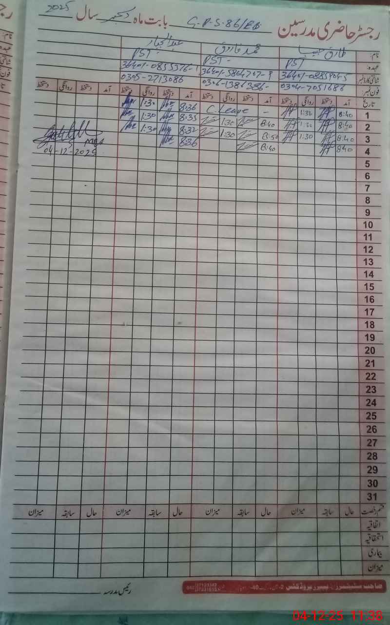 | Name: TA**** HA**** Designation: (School Headmaster's/Headmistress's) PST Phone/Cell Number: 03**** |