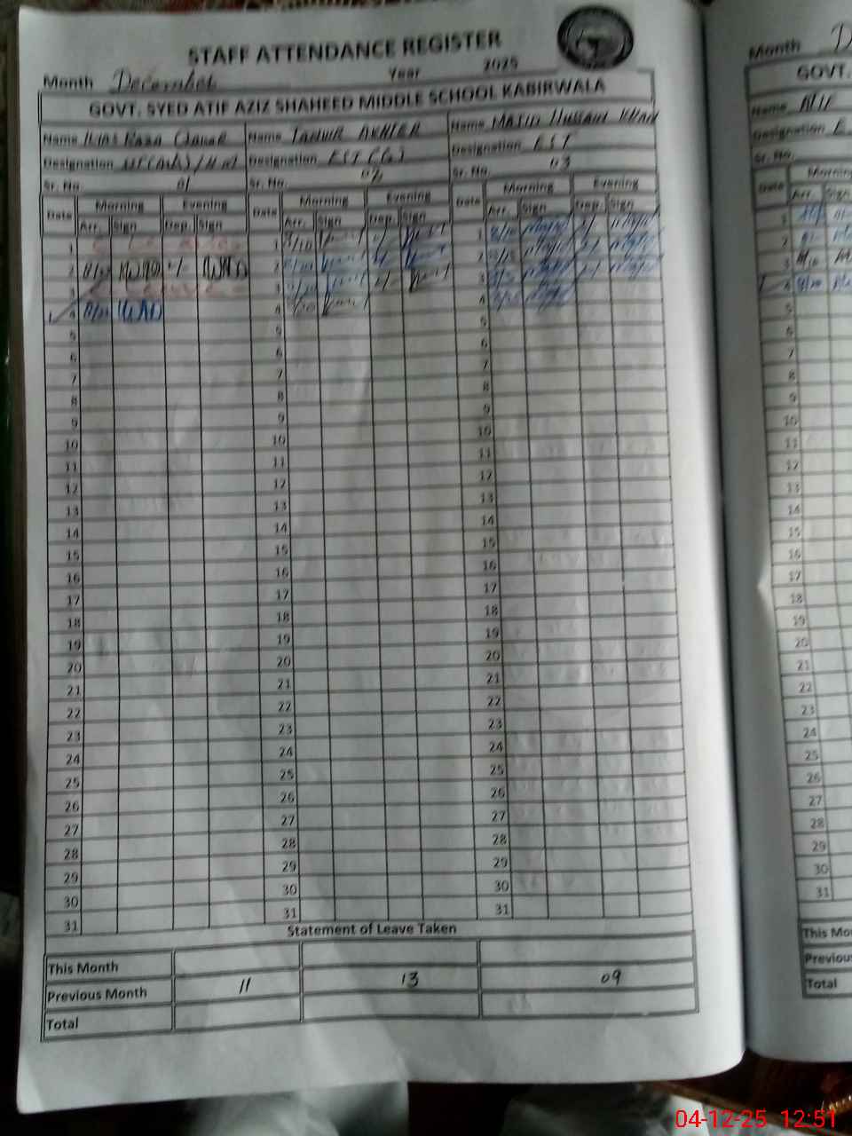| EMIS Code: 36410042 | Name of School: GES SYED ATIF AZIZ SHAHEED (GES KABIR WALA NO.2) , KABIRWALA | |||