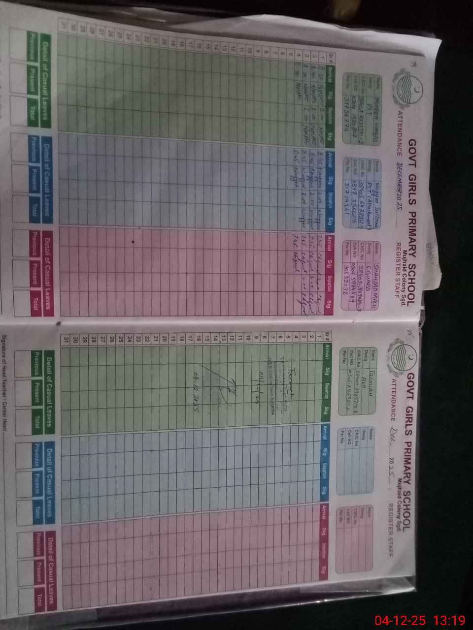 | Name: An**** Ha**** Designation: (School Headmaster's/Headmistress's) PST Phone/Cell Number: 03**** |