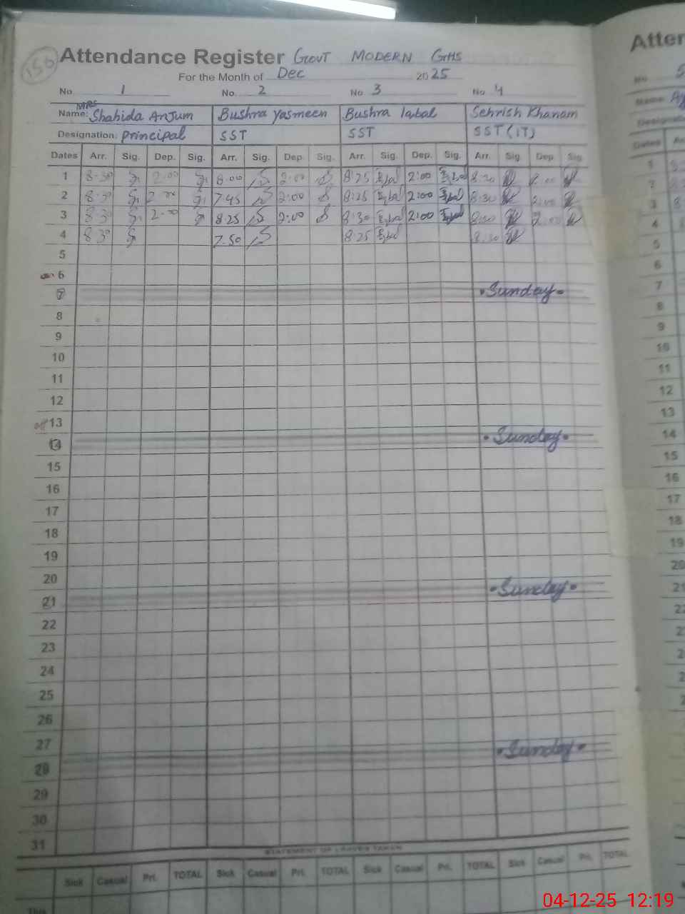 | 35**** | Sy**** Ai**** | JC | Regular | 0 | 26 | 4 | 0 | 0 | 0 | 0 | 0 | 0 | Absent (Un-Authorized) |