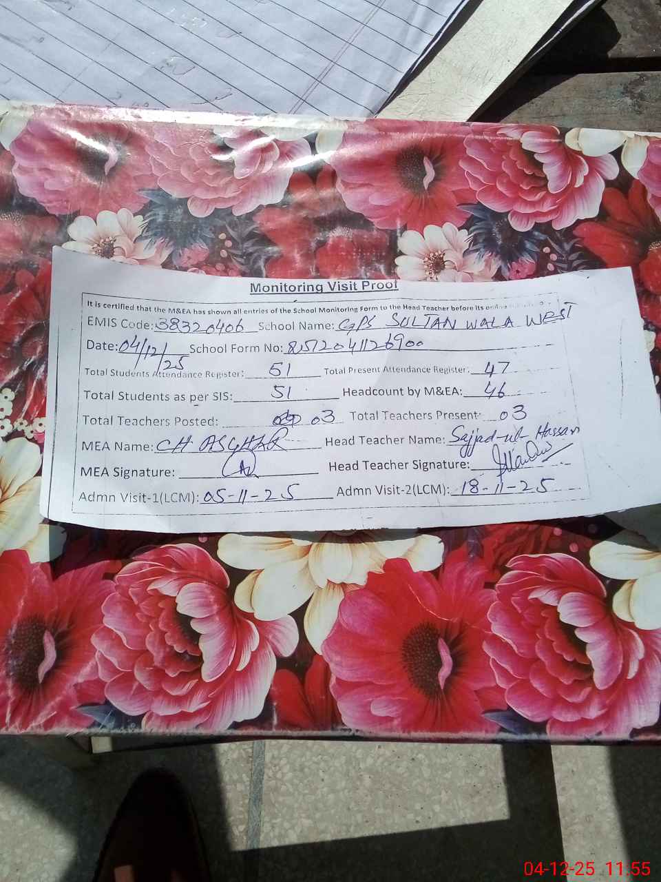 | EMIS Code: 38320406 | Name of School: GPS SULTAN WALA WEST | |||