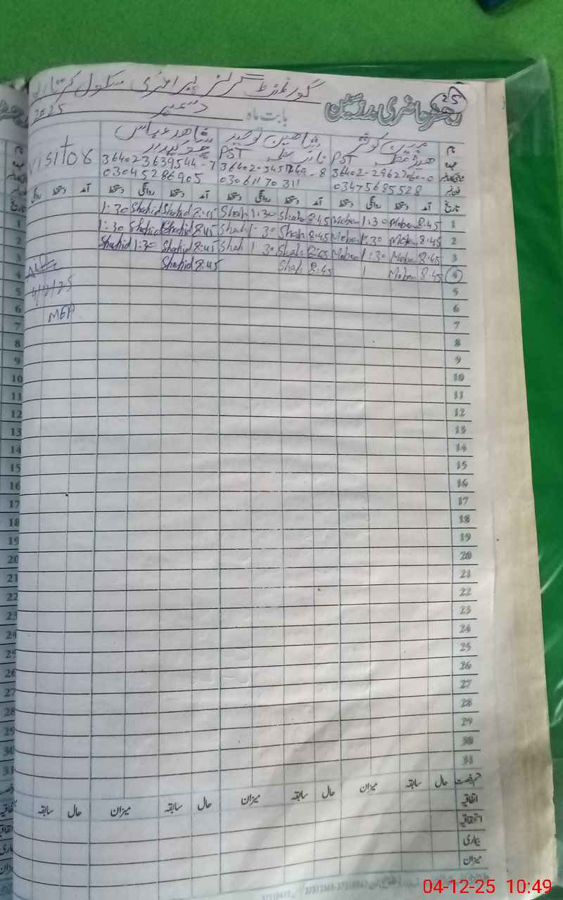 | Attendance Register | Head Teacher | MEA with School | Visit Proof |