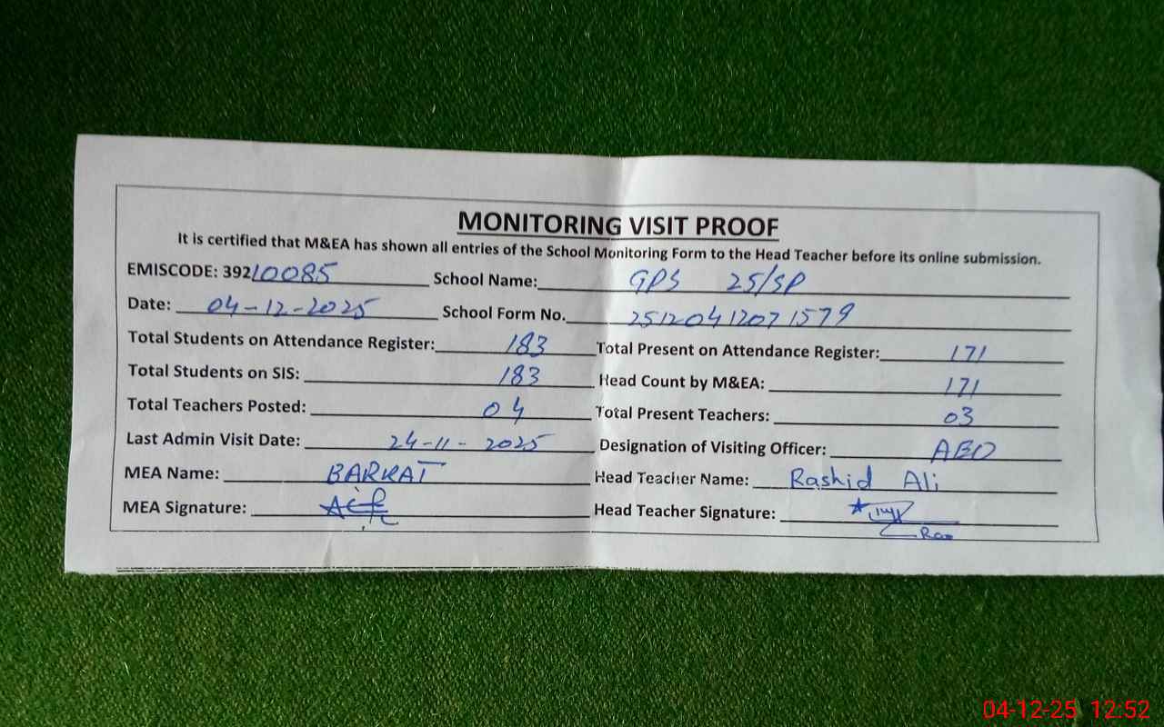 | EMIS Code: 39210085 | Name of School: GPS 25/SP PAKPATTAN | |||