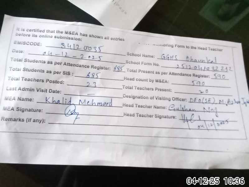 | EMIS Code: 34120035 | Name of School: GGHS DHAUNKAL | |||