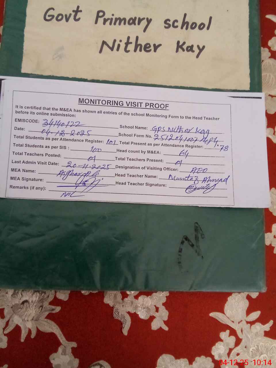 | EMIS Code: 34140122 | Name of School: GPS NITHER KAY | |||