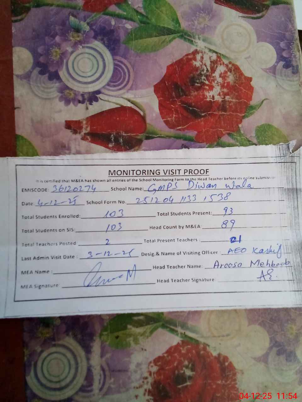| EMIS Code: 36120274 | Name of School: GMPS DIWAN WALA | |||