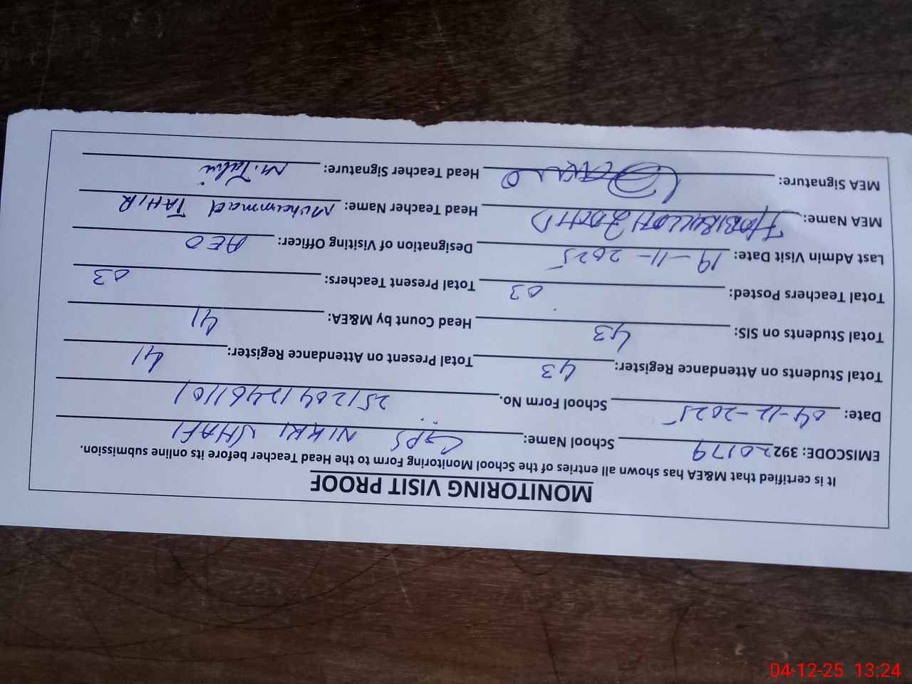 | EMIS Code: 39220179 | Name of School: GPS NIKKI SHAFI P/O SHAFI ARIFWALA | |||