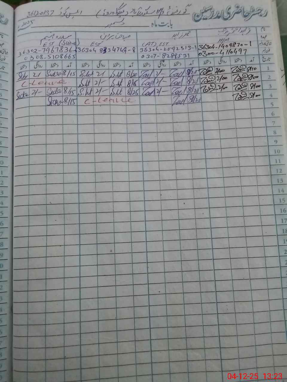 | 36**** | Su**** Pe**** | EST Urdu | Regular | 0 | 0 | 0 | 0 | 0 | 0 | 0 | 0 | 0 | Casual |