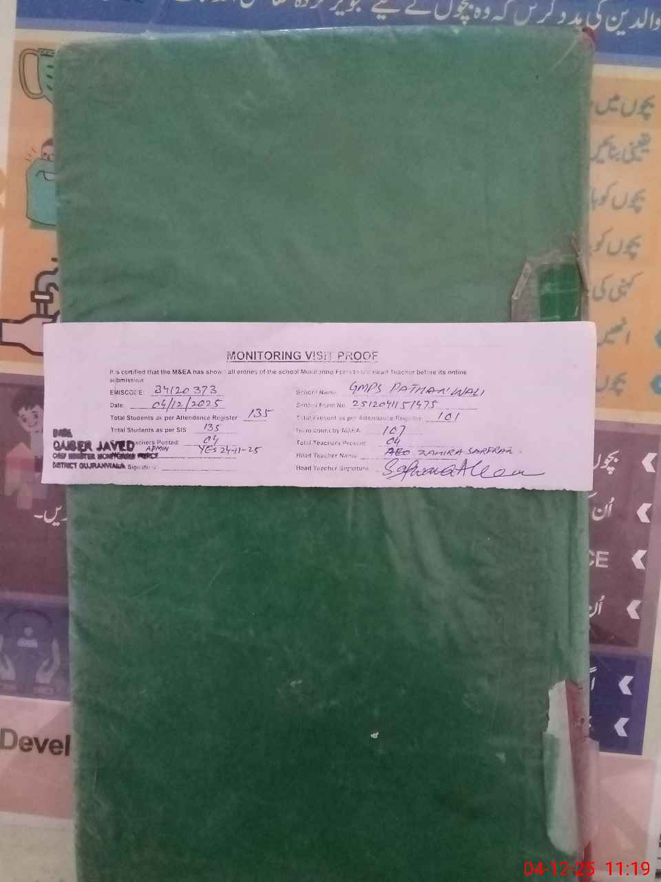 | EMIS Code: 34120373 | Name of School: GMPS PATHAN WALI | |||