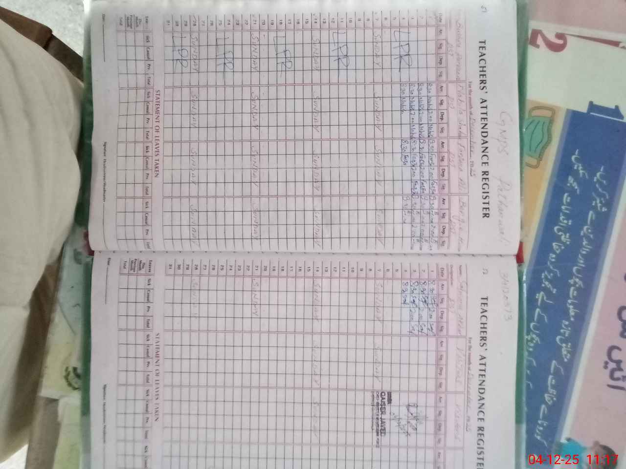 | CNIC | Full Name | Designation | R/C | Absence During Last Calender Month |