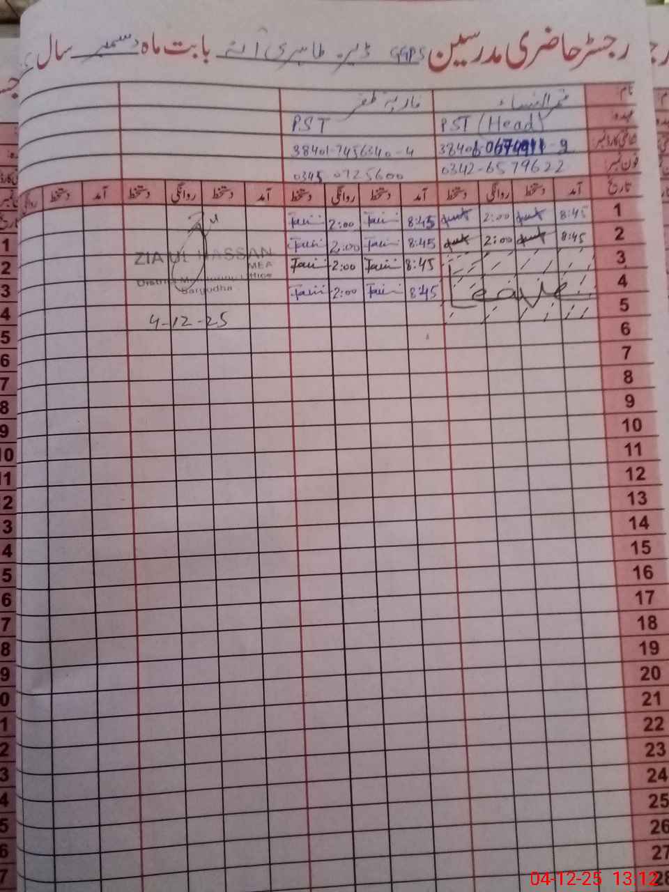 | Name: Qa**** UnNi**** Designation: (School Headmaster's/Headmistress's) PST Phone/Cell Number: 03**** |