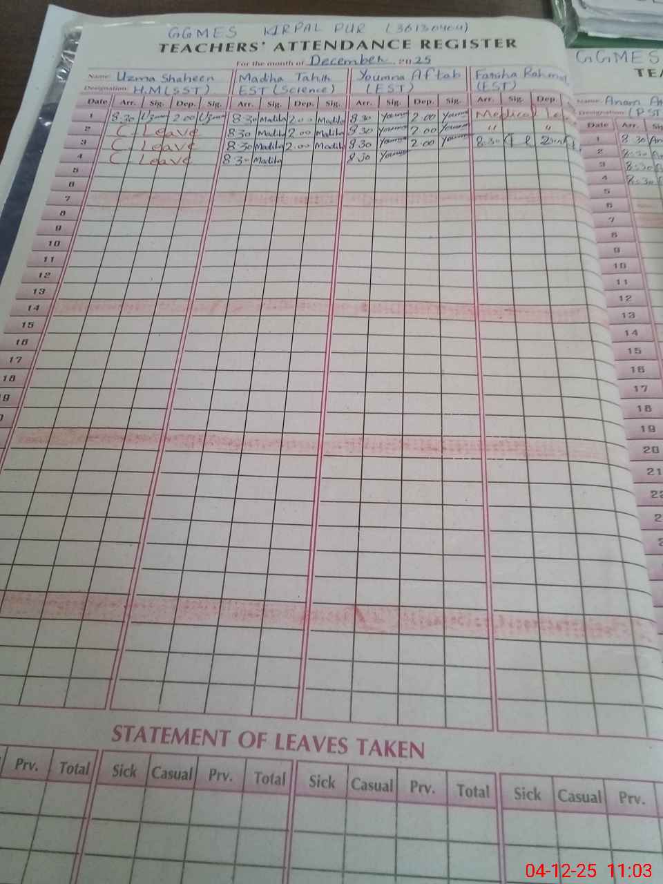 | 34**** | Fa**** Ra**** | EST English | Regular | 0 | 0 | 0 | 0 | 0 | 0 | 0 | 0 | 0 | Absent (Un-Authorized) |