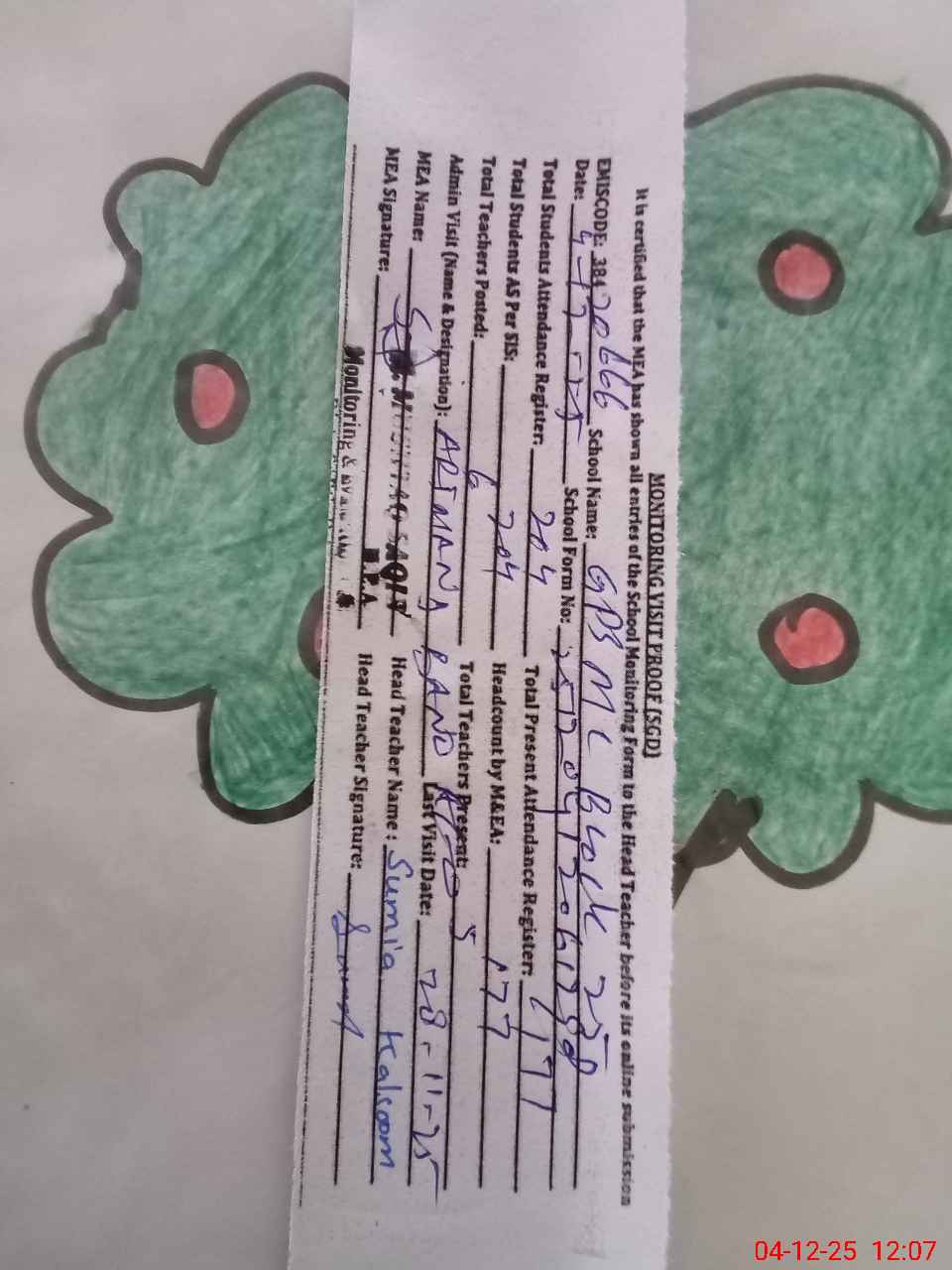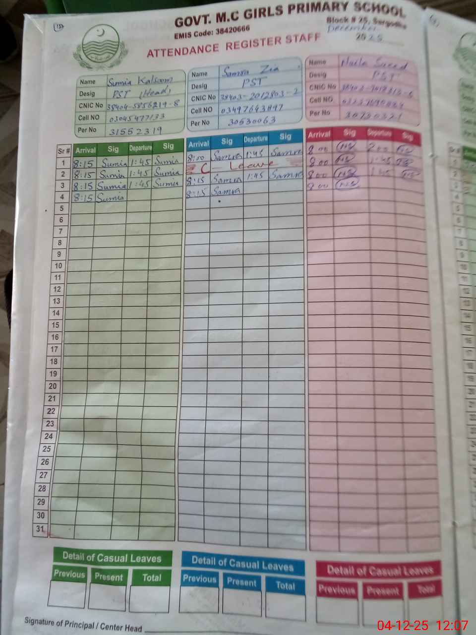 | EMIS Code: 38420666 | Name of School: GGPS MC BLOCK NO.25 SARGODHA | |||