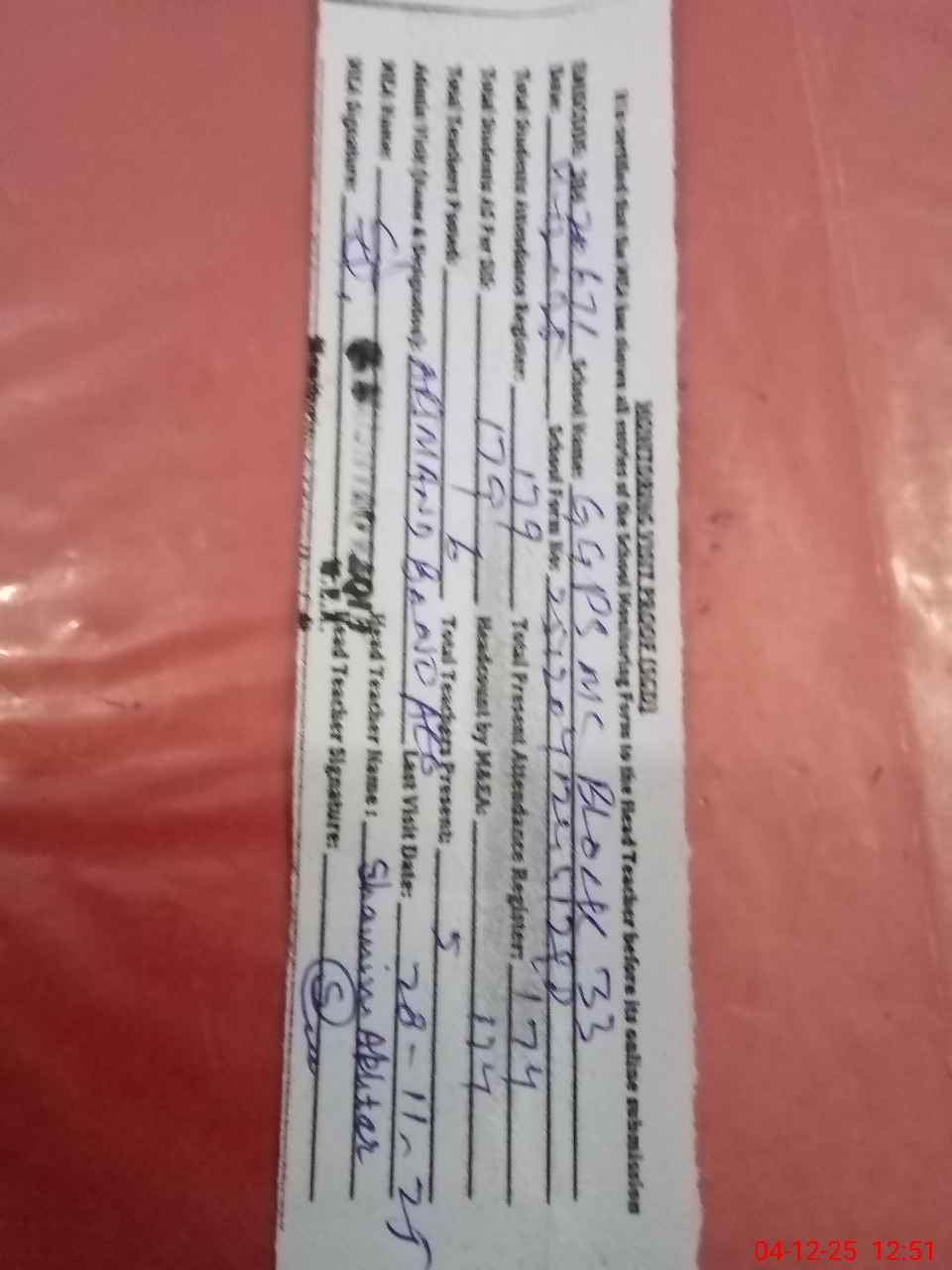 | Attendance Register | Head Teacher | MEA with School | Visit Proof |