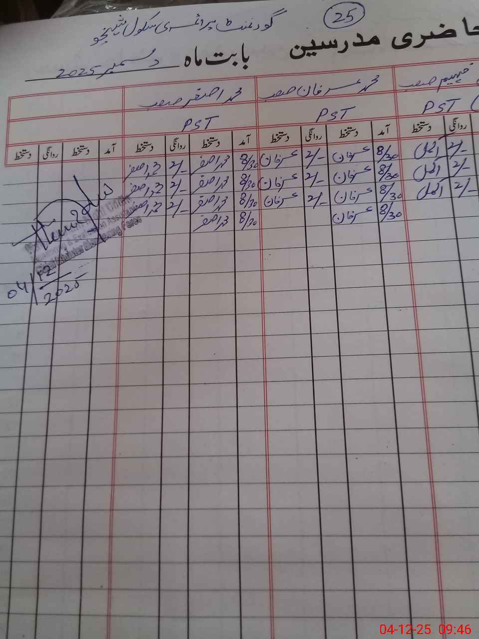| CNIC | Full Name | Designation | R/C | Absence during last cal. month |