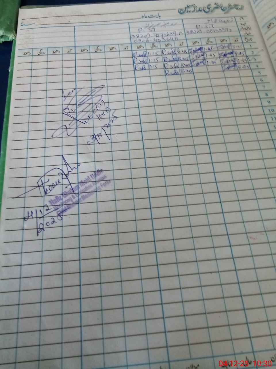 | CNIC | Full Name | Designation | R/C | Absence During Last Calender Month |