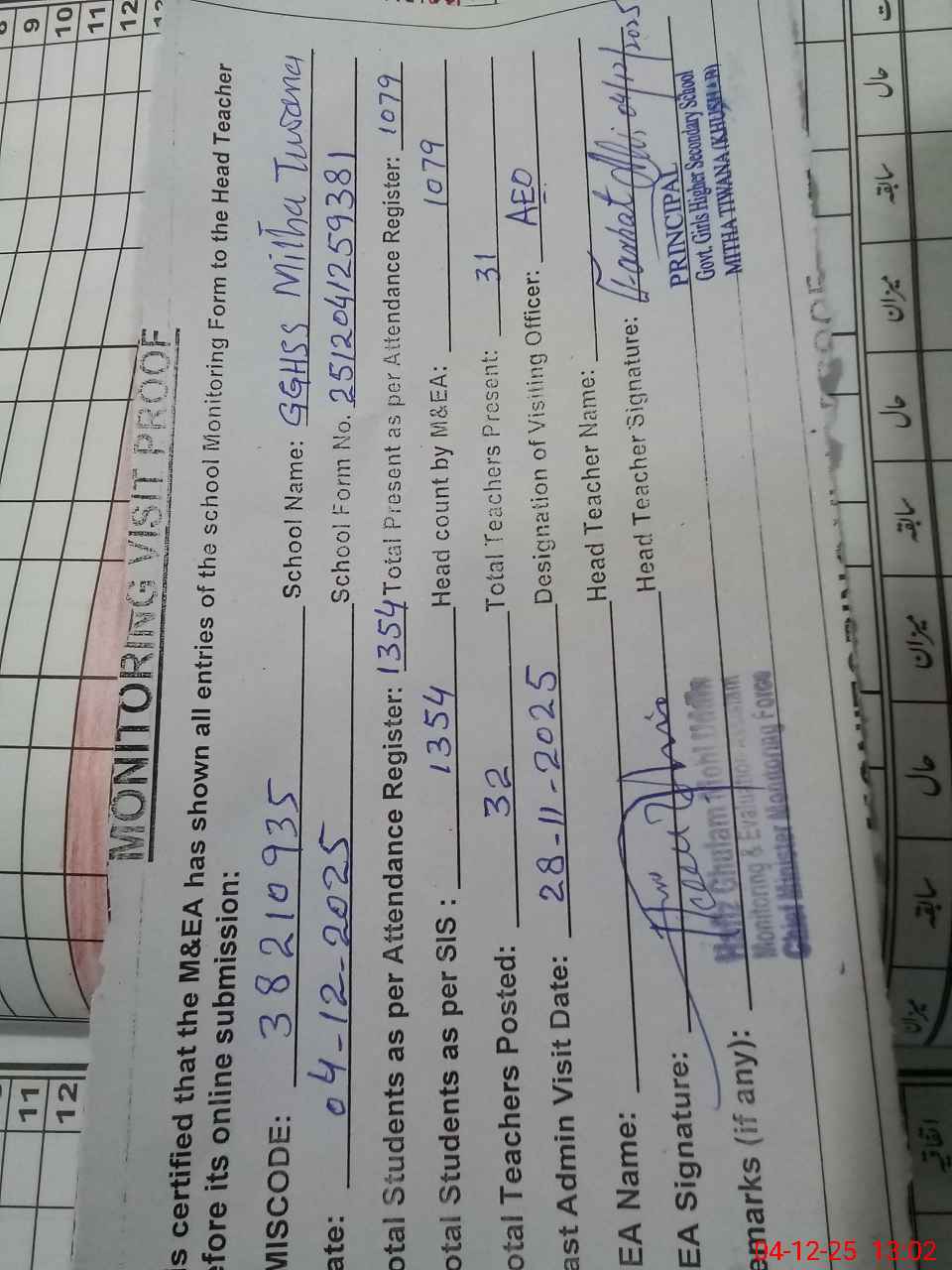 | EMIS Code: 38210935 | Name of School: GGHSS MITHA TIWANA | |||