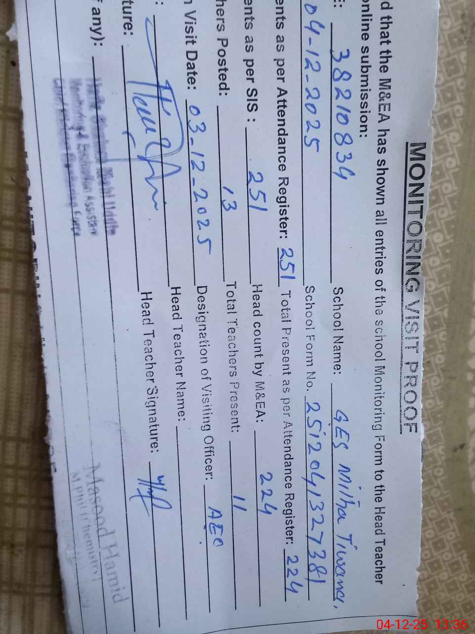 | EMIS Code: 38210834 | Name of School: GES MITHA TIWANA | |||