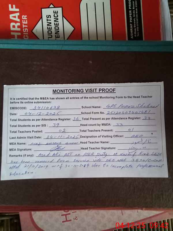 | EMIS Code: 34110638 | Name of School: GPS PEERU SHAHEED | |||