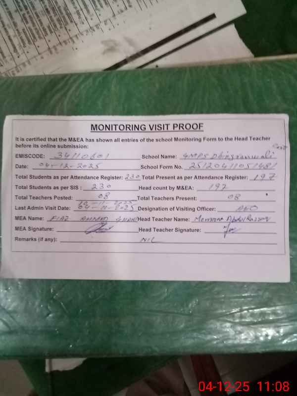 | EMIS Code: 34110601 | Name of School: GMPS DHINGARAN WALI CANTT | |||