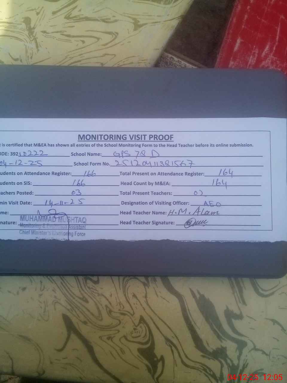 | EMIS Code: 39210222 | Name of School: GPS CHAK NO. 78/D | |||