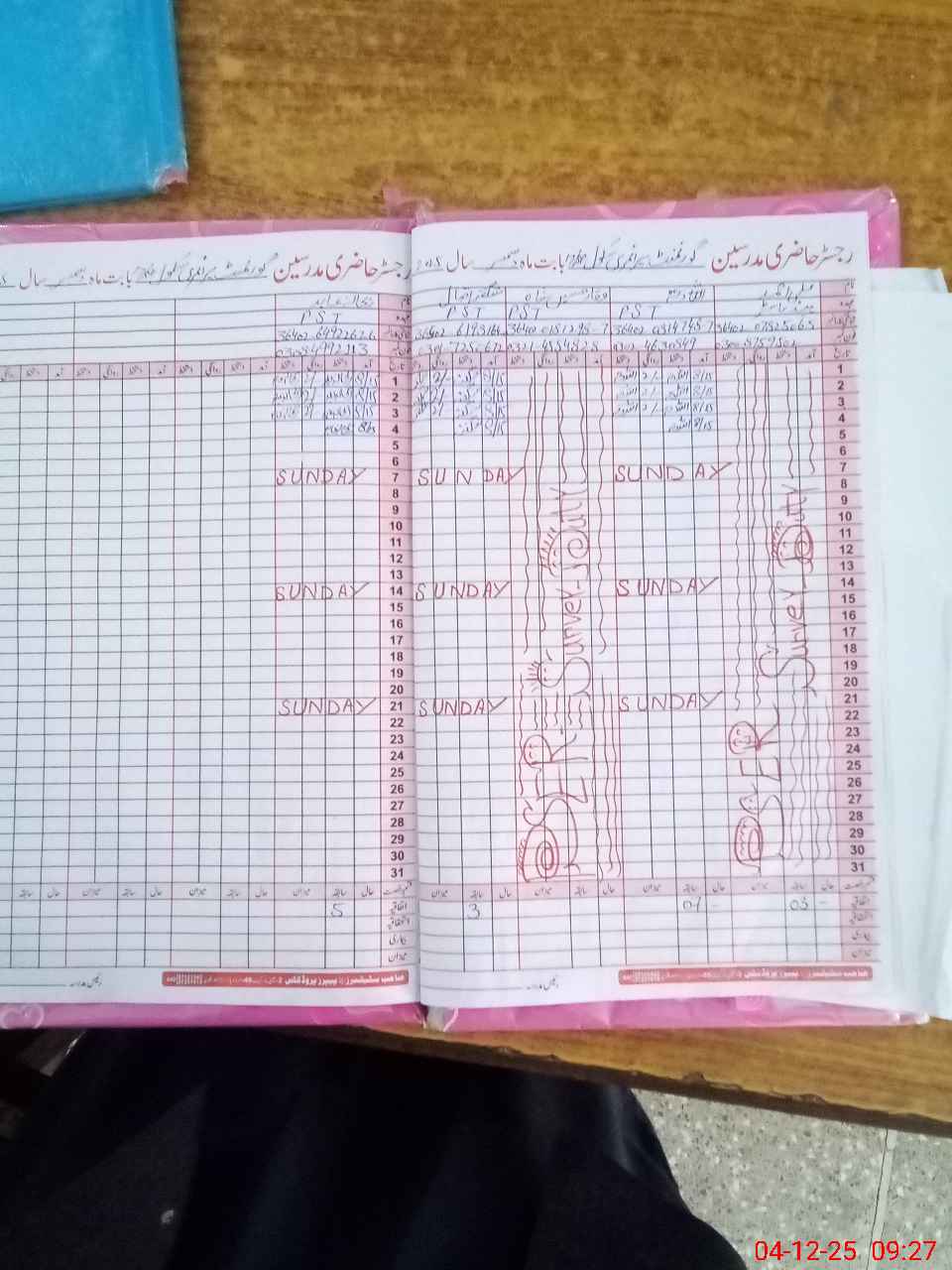 | CNIC | Full Name | Designation | R/C | Absence During Last Calender Month |