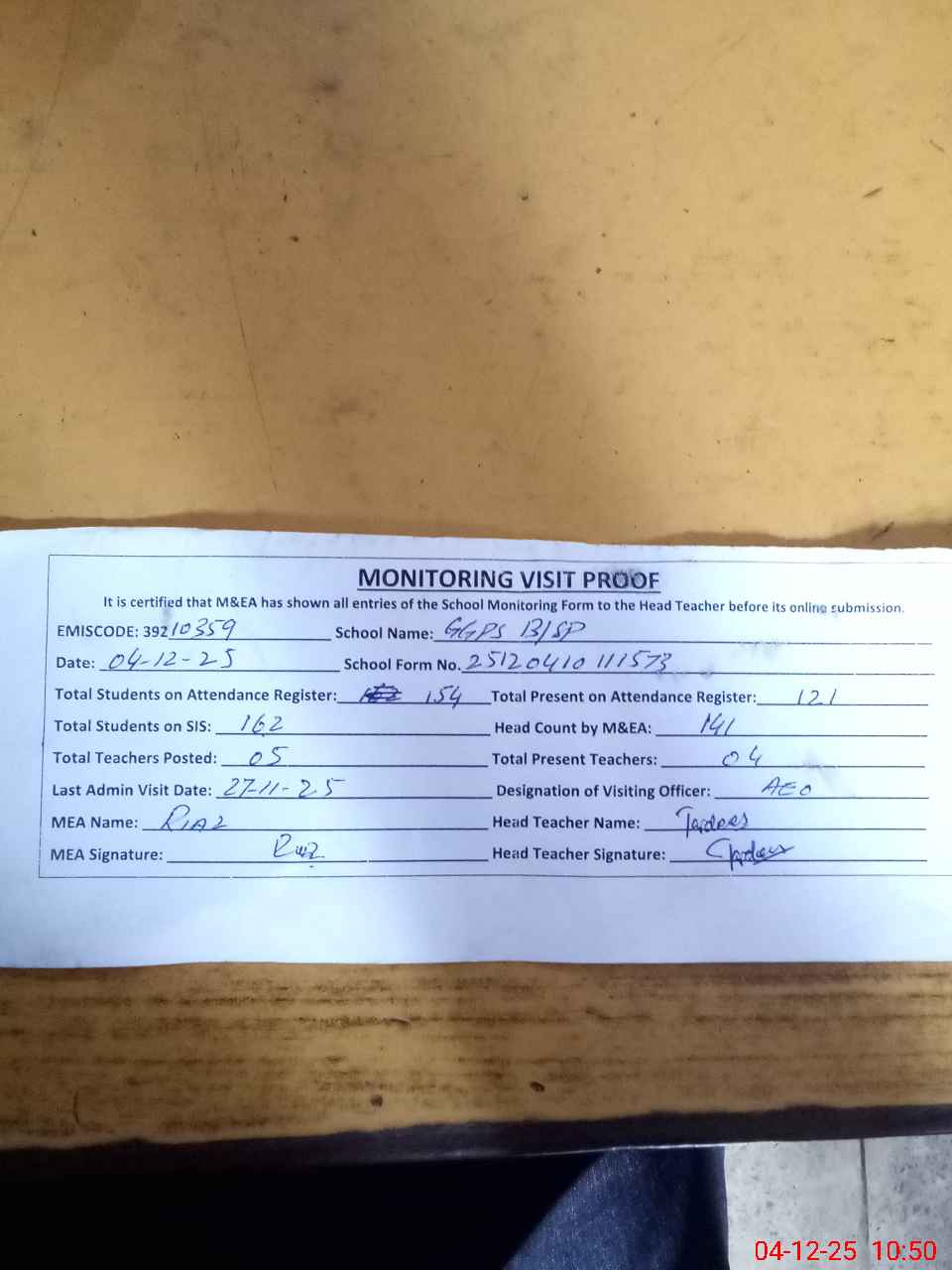 | EMIS Code: 39210359 | Name of School: GGPS 13 SP | |||