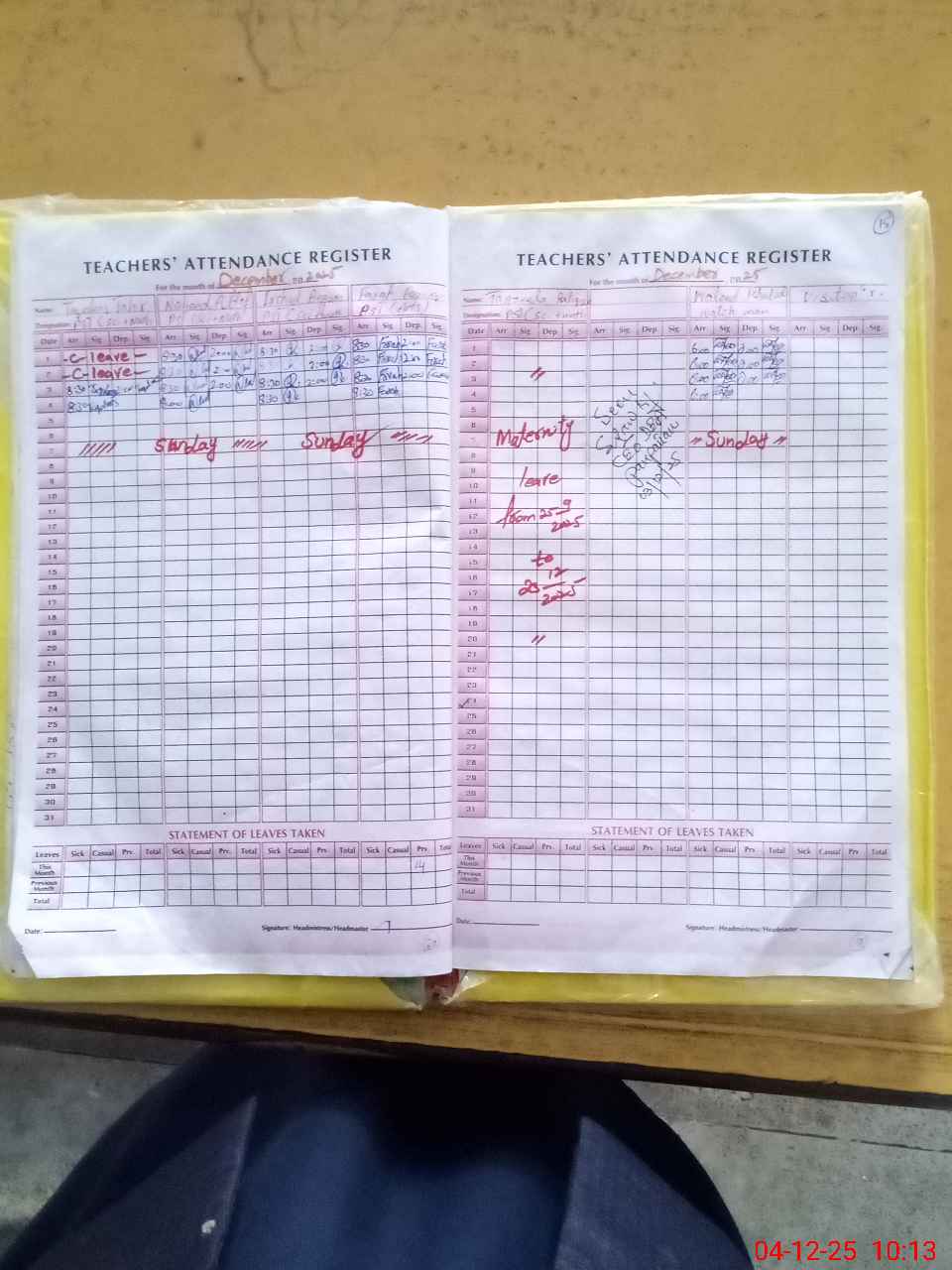 | 36**** | Ta**** Ra**** | PST Science/Maths | Regular | 0 | 0 | 0 | 0 | 0 | 0 | 0 | 0 | 0 | Maternity |