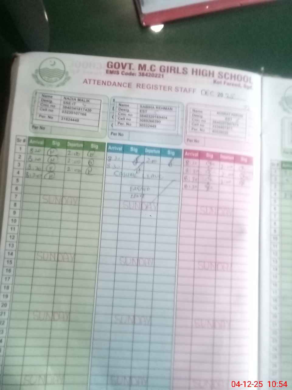 | EMIS Code: 38420221 | Name of School: GGHS MC KOT FAREED | |||