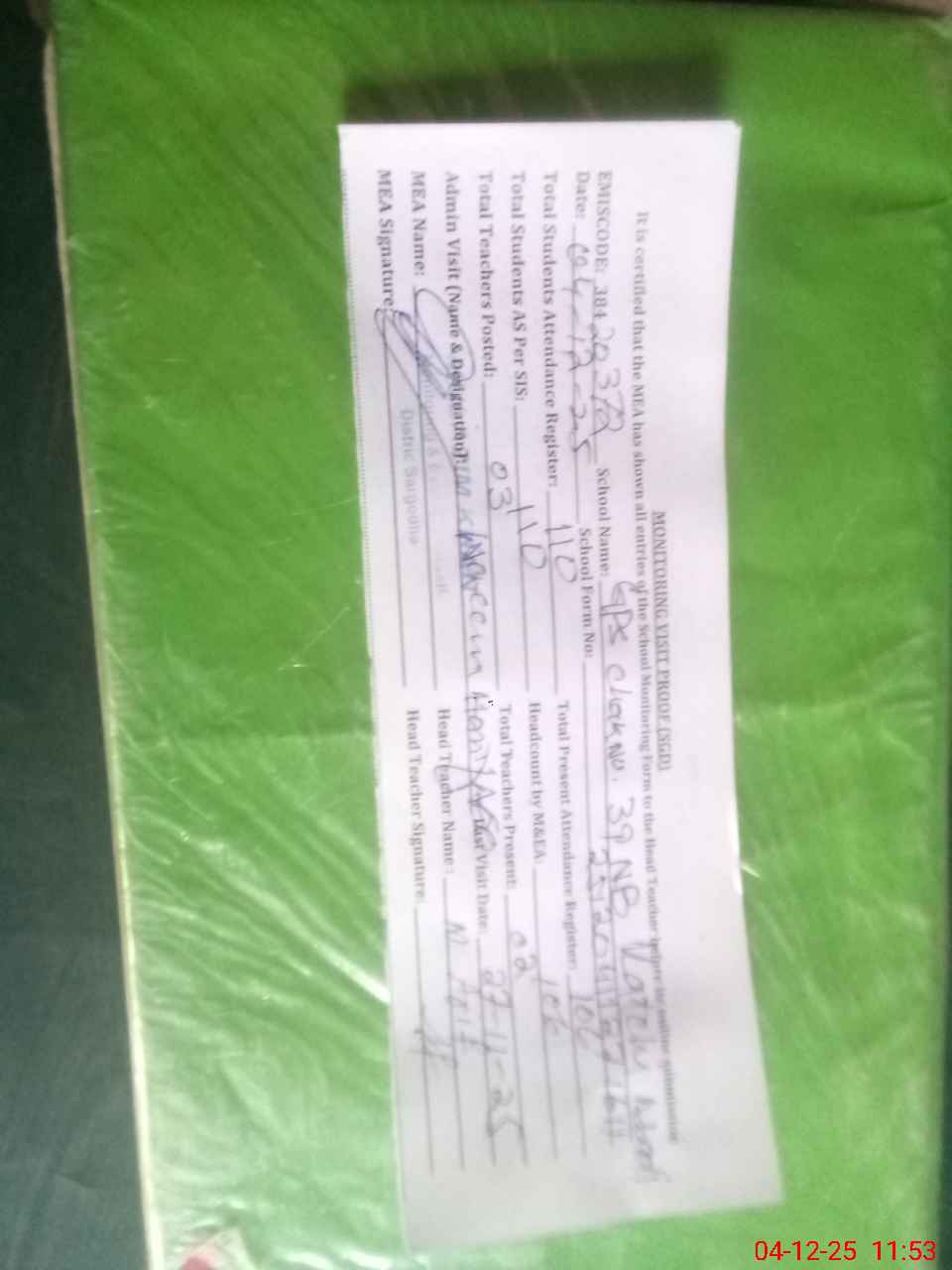 | EMIS Code: 38420372 | Name of School: GPS CHAK NO.39 NB KACHI ABADI | |||