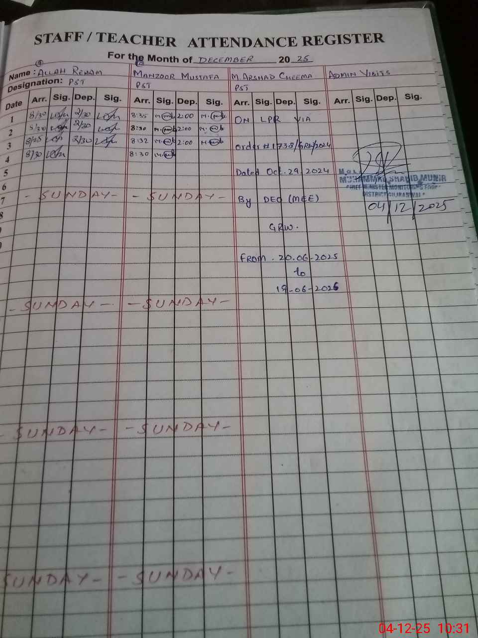 | 34**** | Ah**** Sh**** | PST Science/Maths | Regular | 0 | 0 | 0 | 0 | 0 | 0 | 0 | 0 | 0 | Absent (Un-Authorized) |