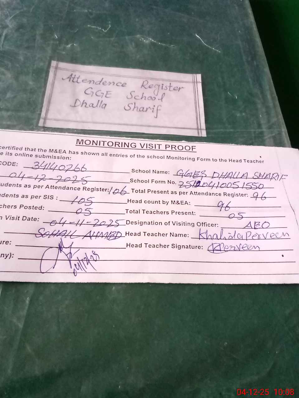 | EMIS Code: 34140266 | Name of School: GGES DHALLA SHARIF | |||