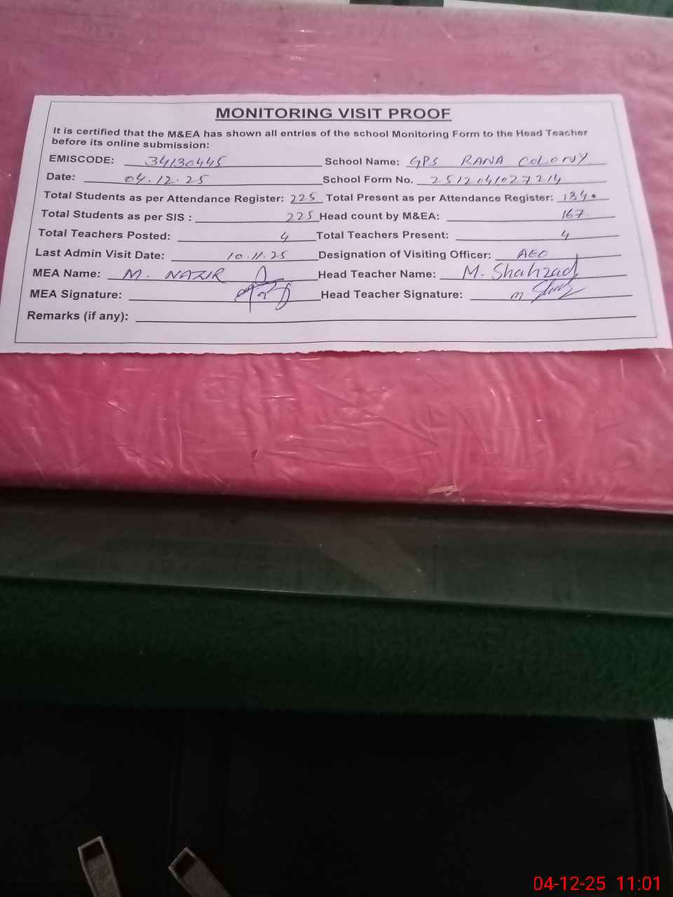 | EMIS Code: 34130445 | Name of School: GPS RANA COLONY | |||
