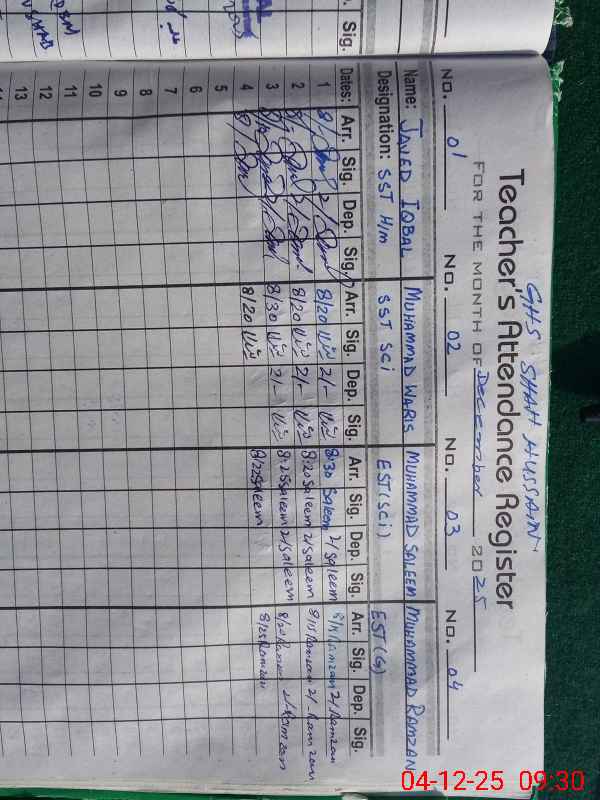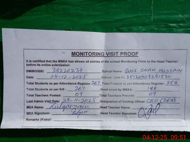 | EMIS Code: 38220234 | Name of School: GHS SHAH HUSSAIN | |||
