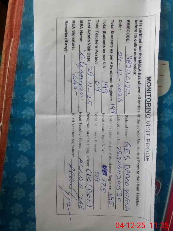 | EMIS Code: 38220122 | Name of School: GES DADOO WALA | |||