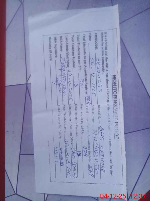| EMIS Code: 38220253 | Name of School: GHS KATIMAR | |||