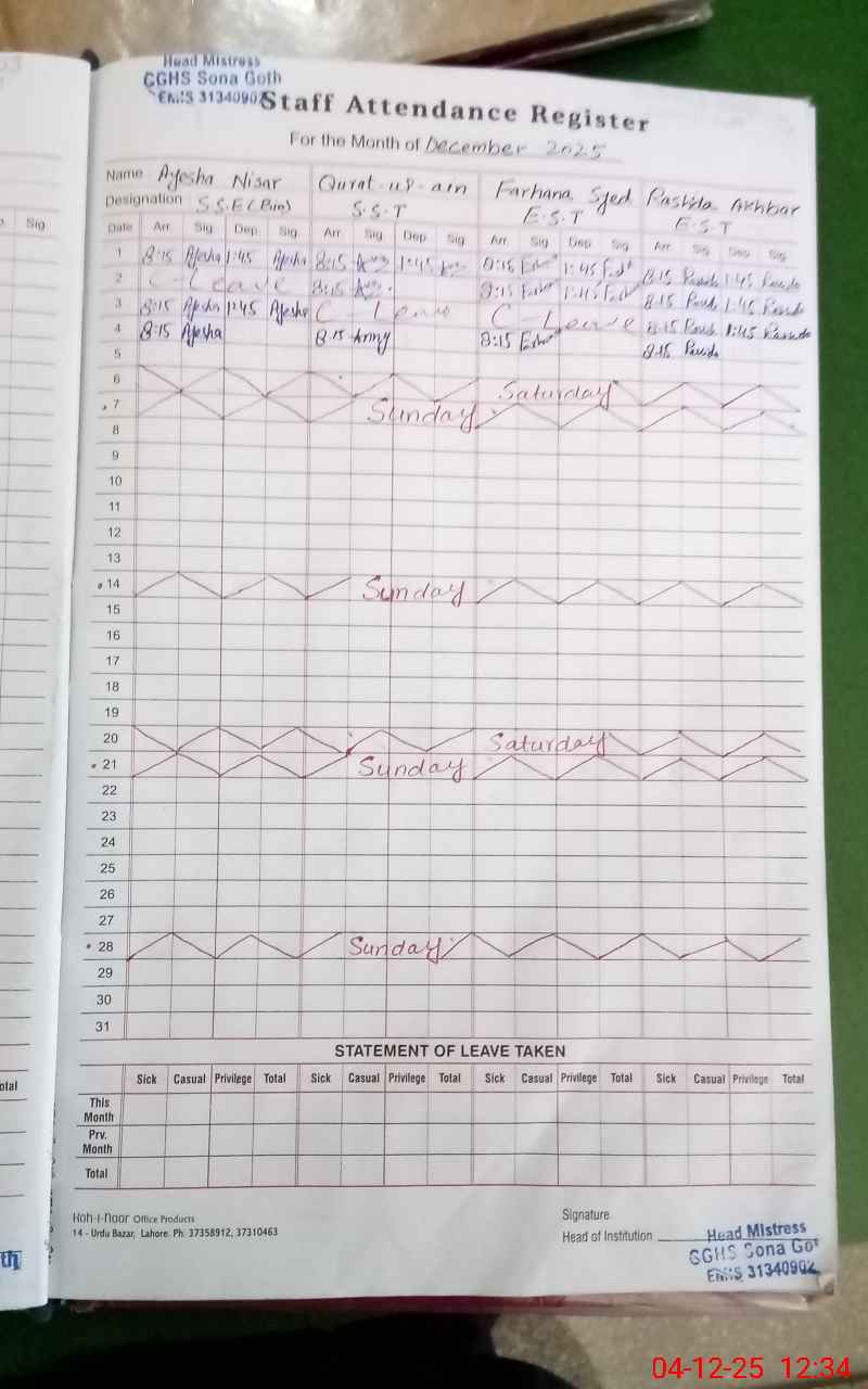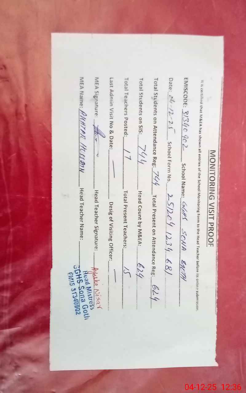 | EMIS Code: 31340902 | Name of School: GGHS SONA GOTH | |||
