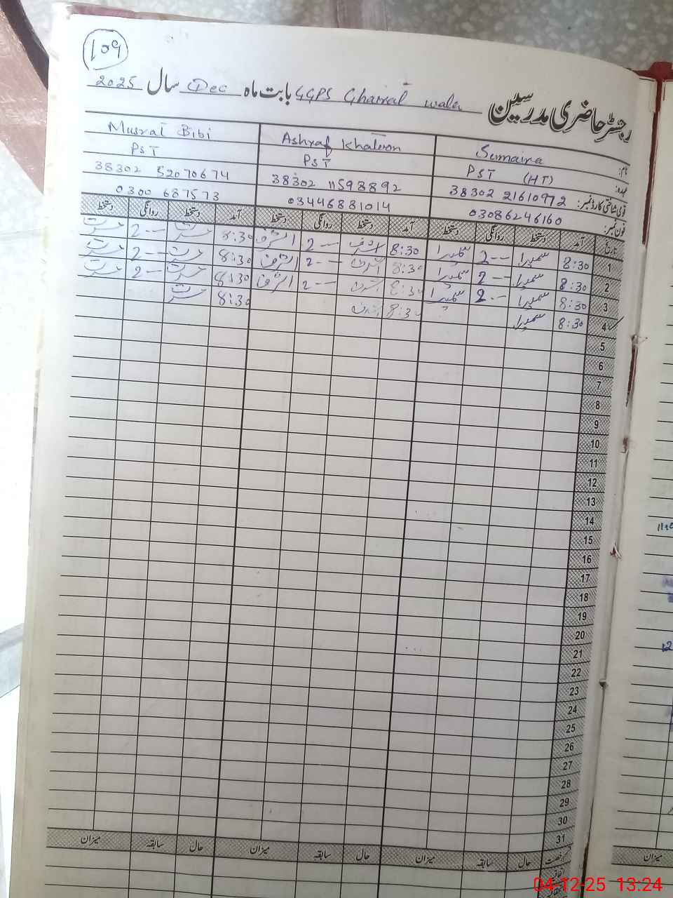| Name: Su**** Designation: (School Headmaster's/Headmistress's) PST Phone/Cell Number: 03**** |