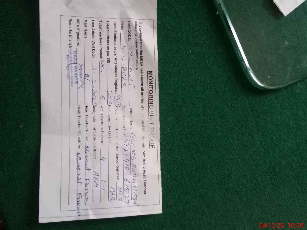 | EMIS Code: 38210715 | Name of School: GGCMS KATHA MISRAL | |||