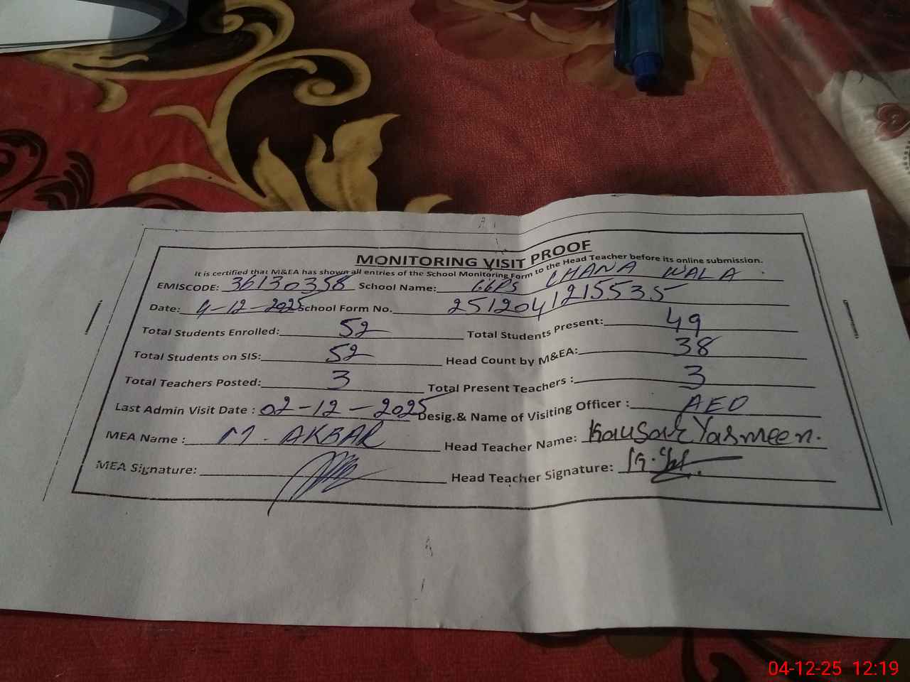 | EMIS Code: 36130358 | Name of School: GGPS CHANNA WALA JHOKE WAINS | |||